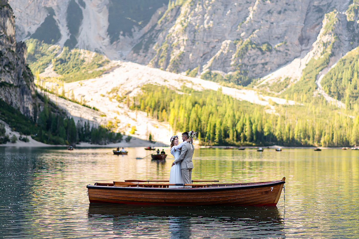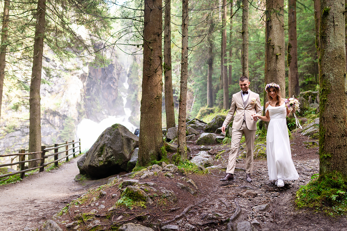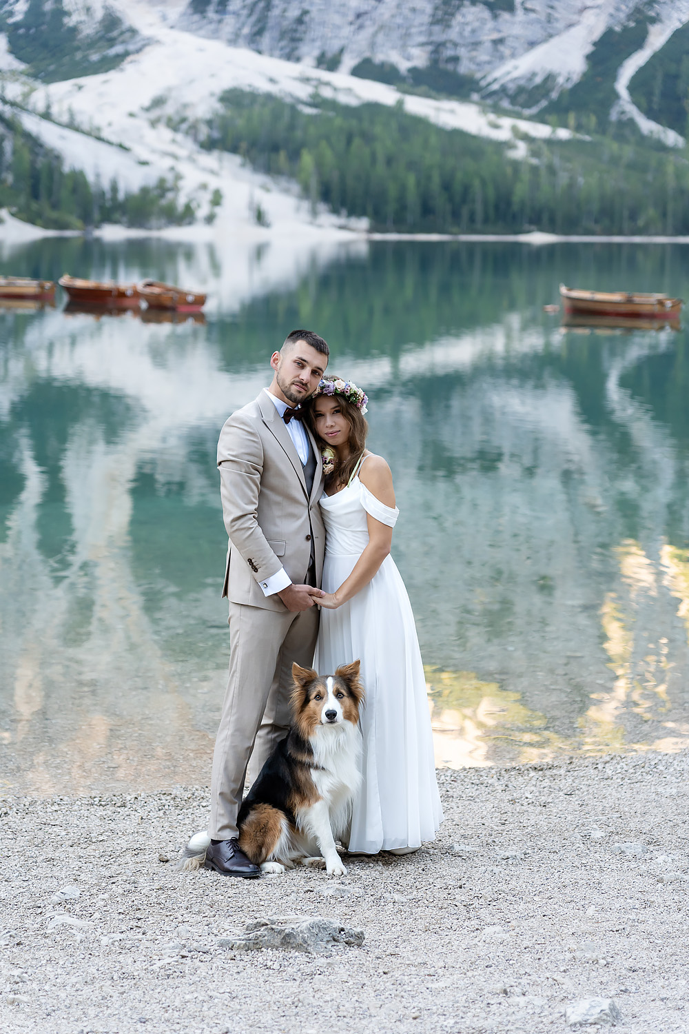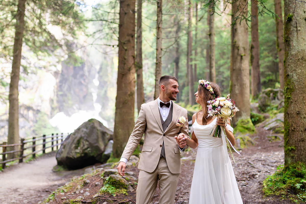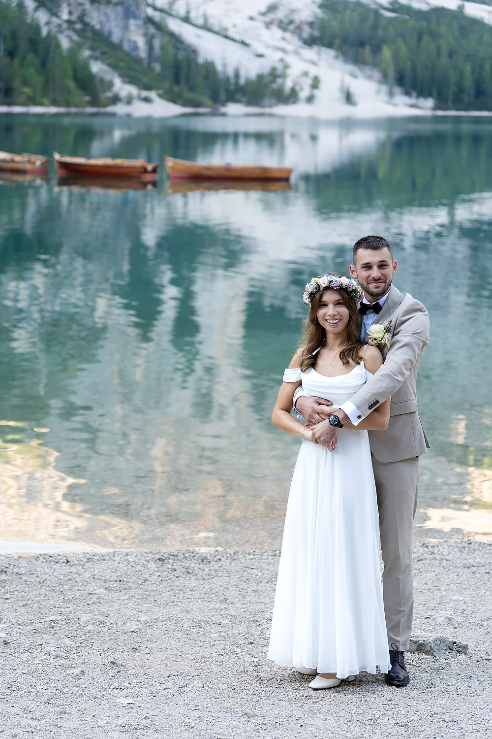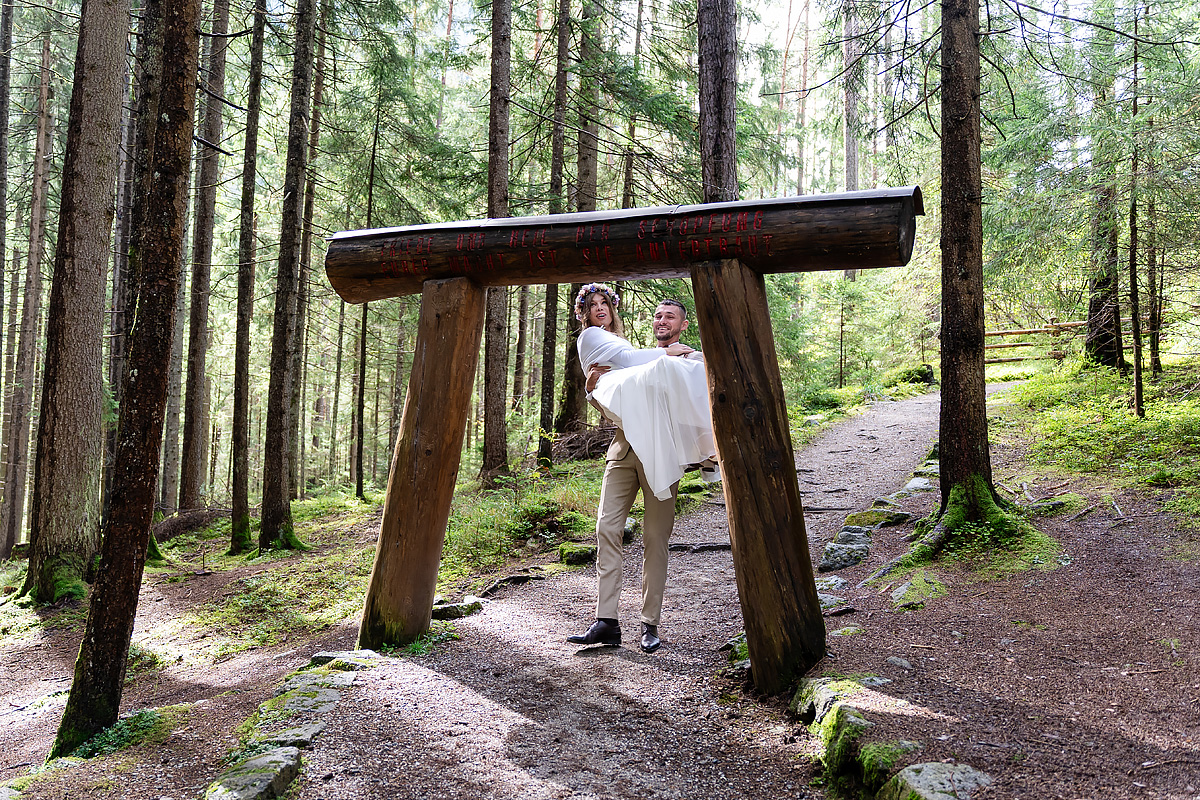 sesja ślubna: wodospad: Cascate di Riva & jezioro: Lago di Braies (Pragser See)