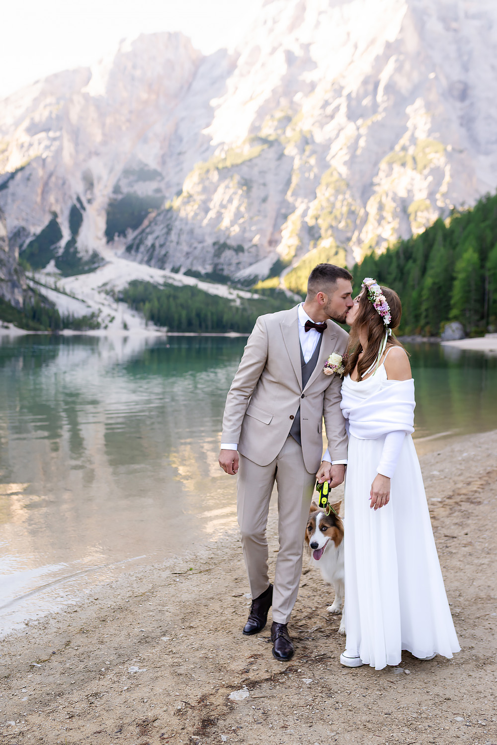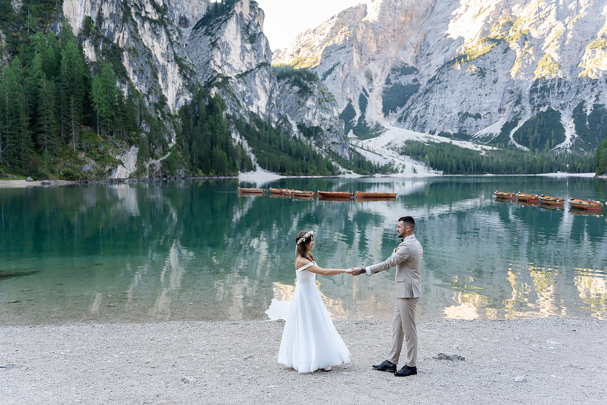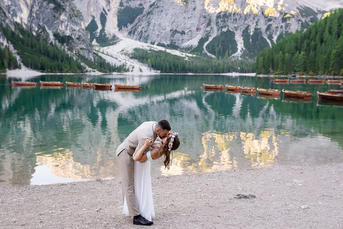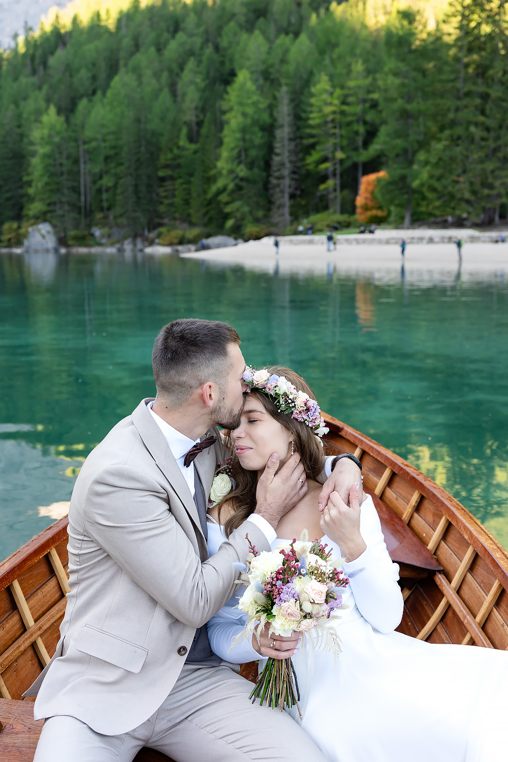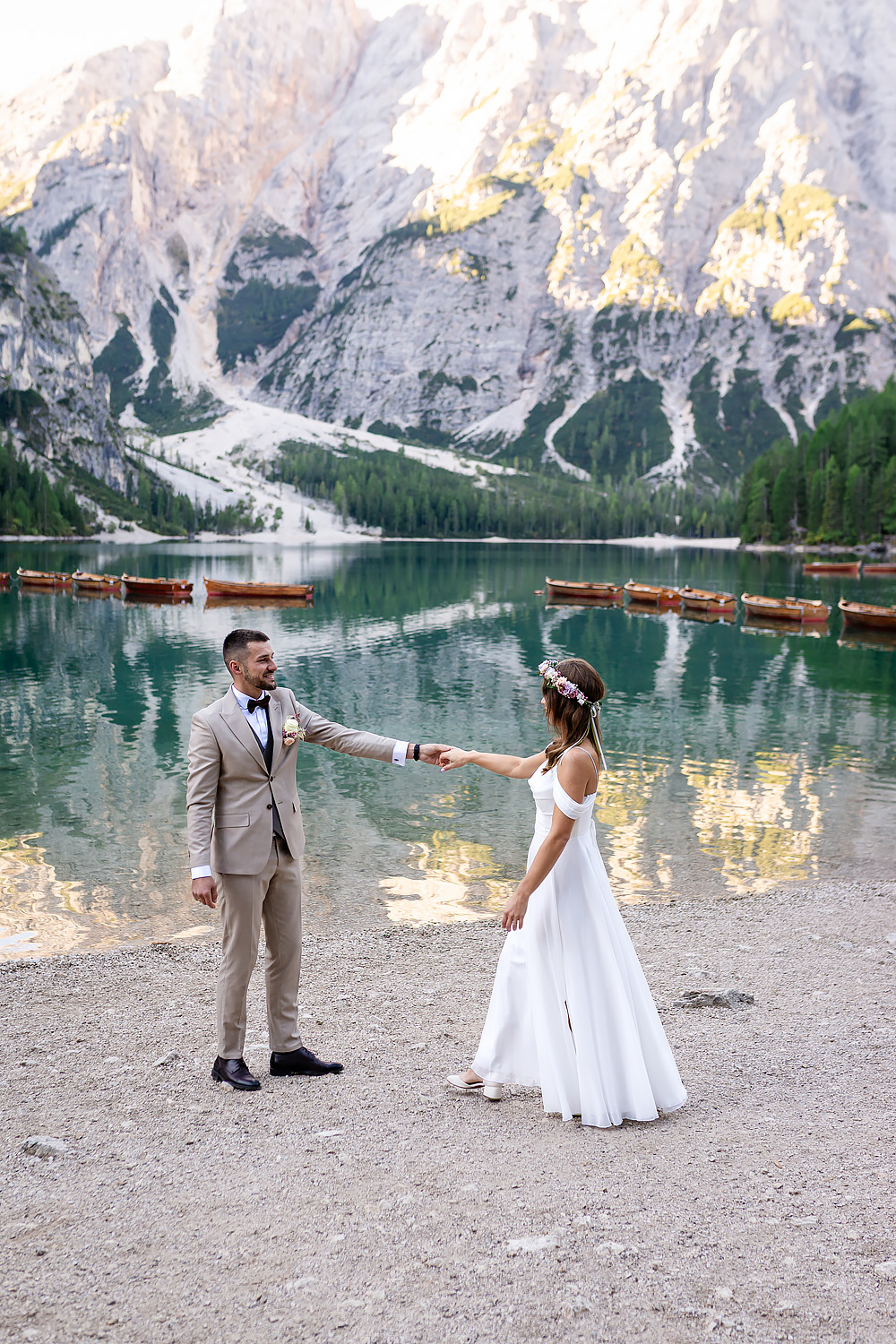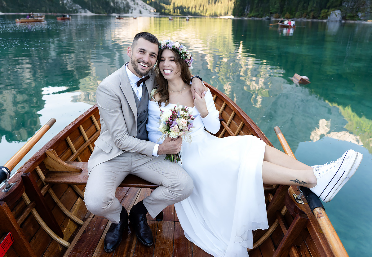 sesja ślubna: wodospad: Cascate di Riva & jezioro: Lago di Braies (Pragser See)