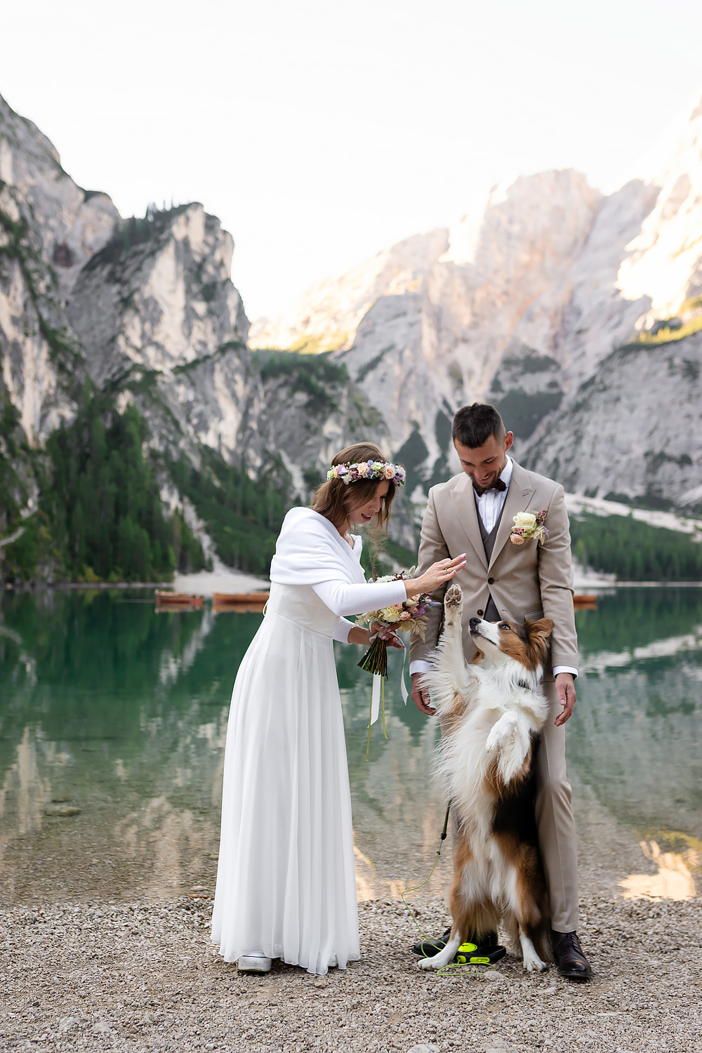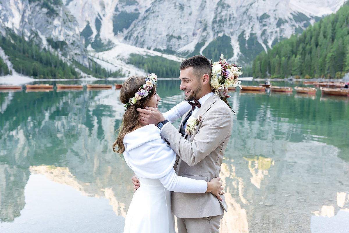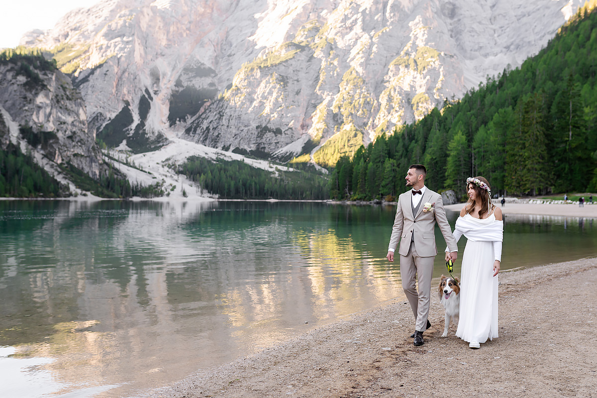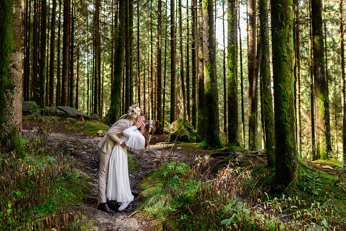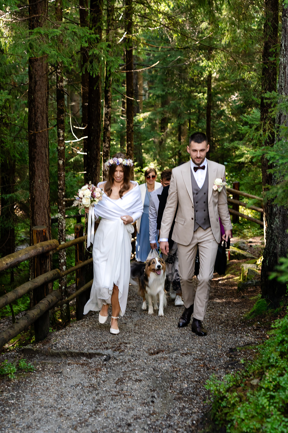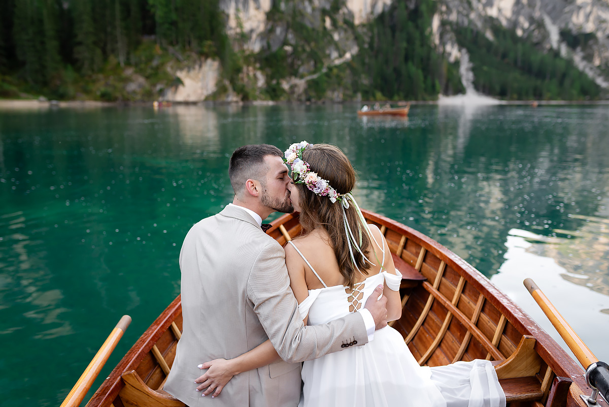 sesja ślubna: wodospad: Cascate di Riva & jezioro: Lago di Braies (Pragser See)