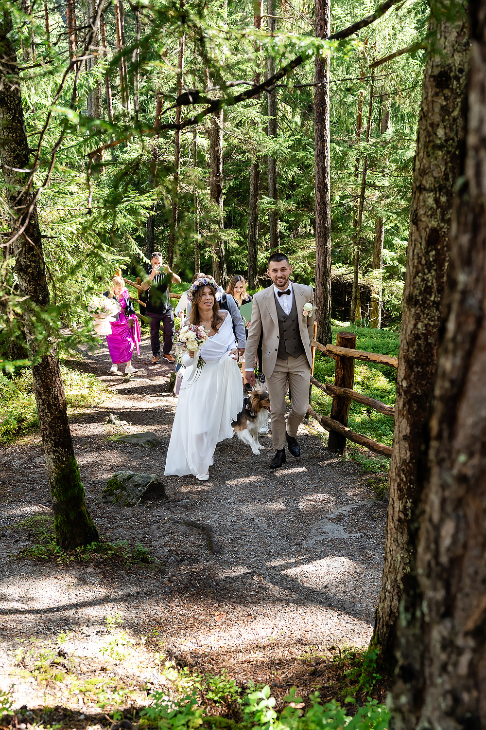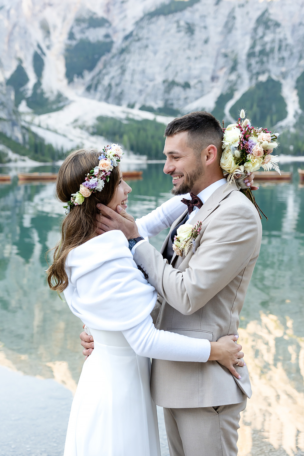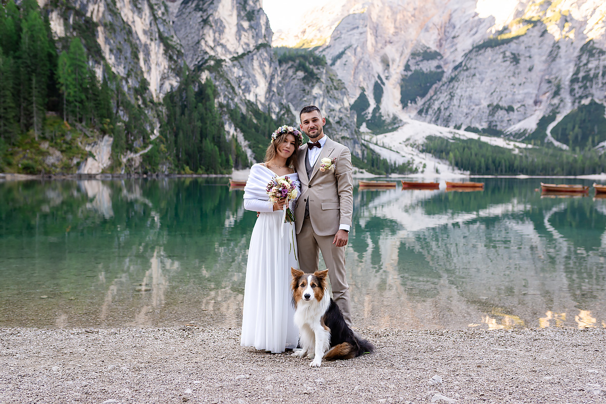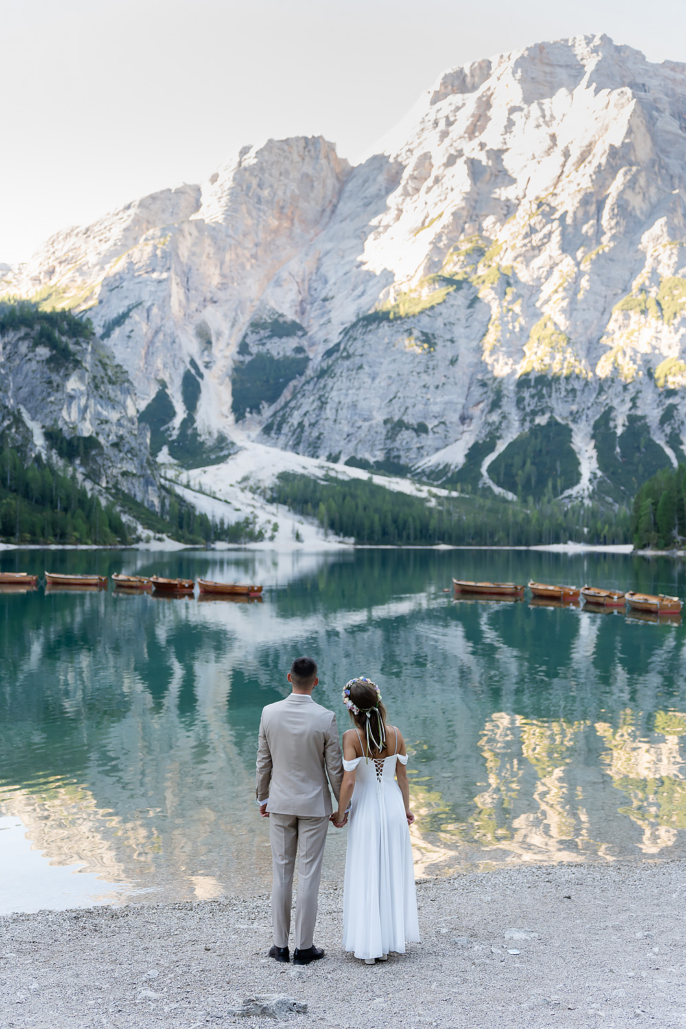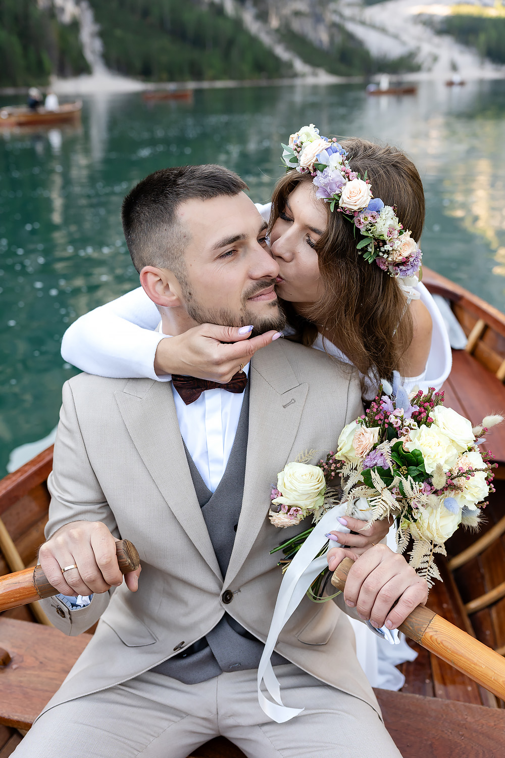 sesja ślubna: wodospad: Cascate di Riva & jezioro: Lago di Braies (Pragser See)