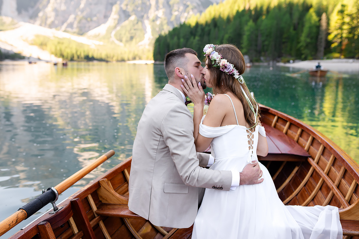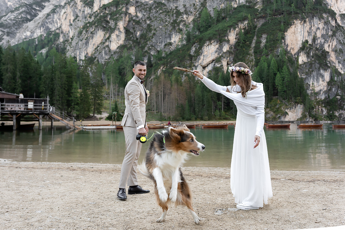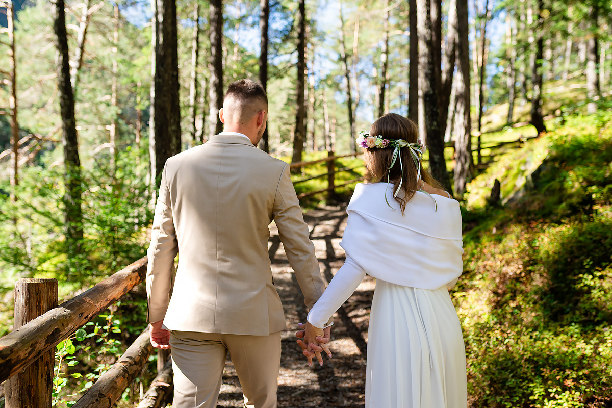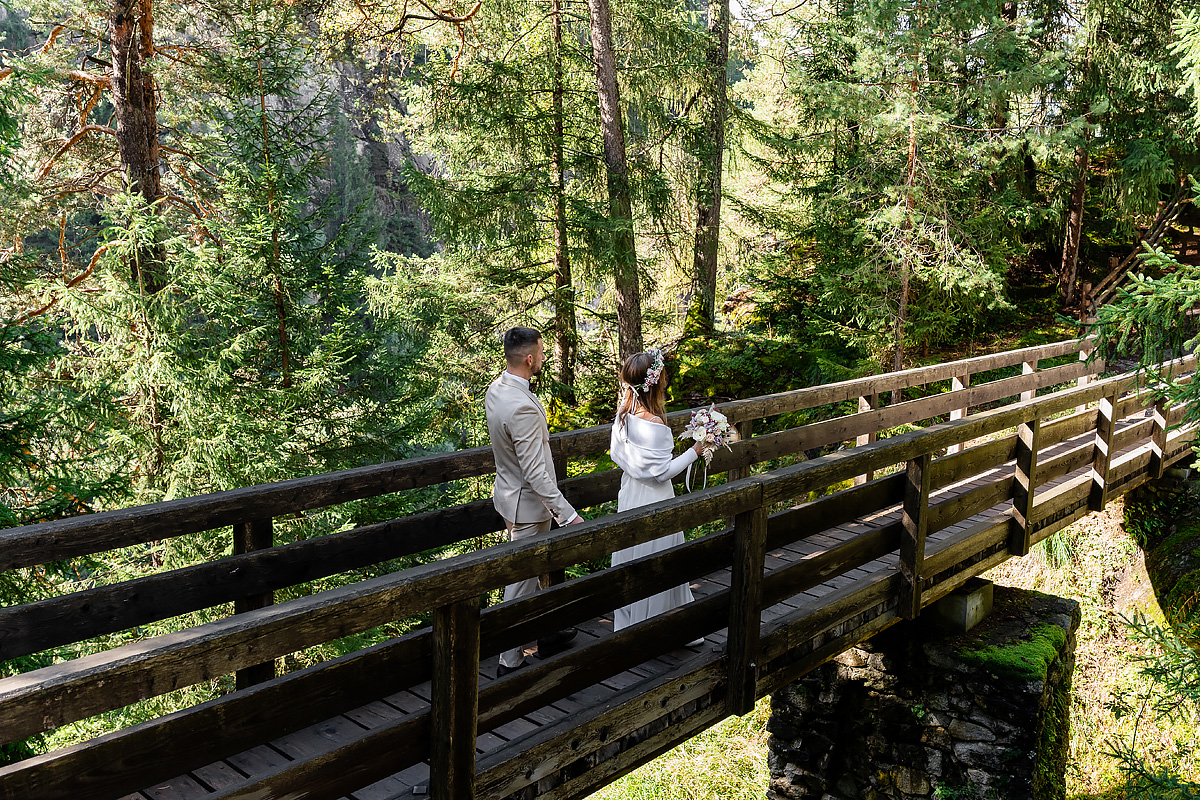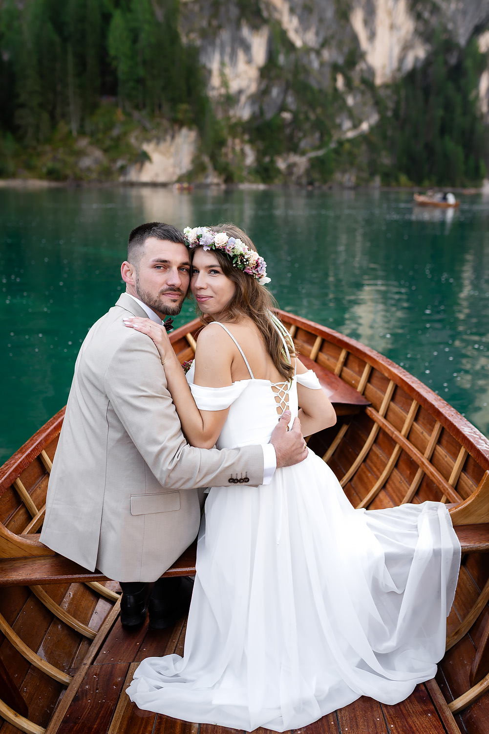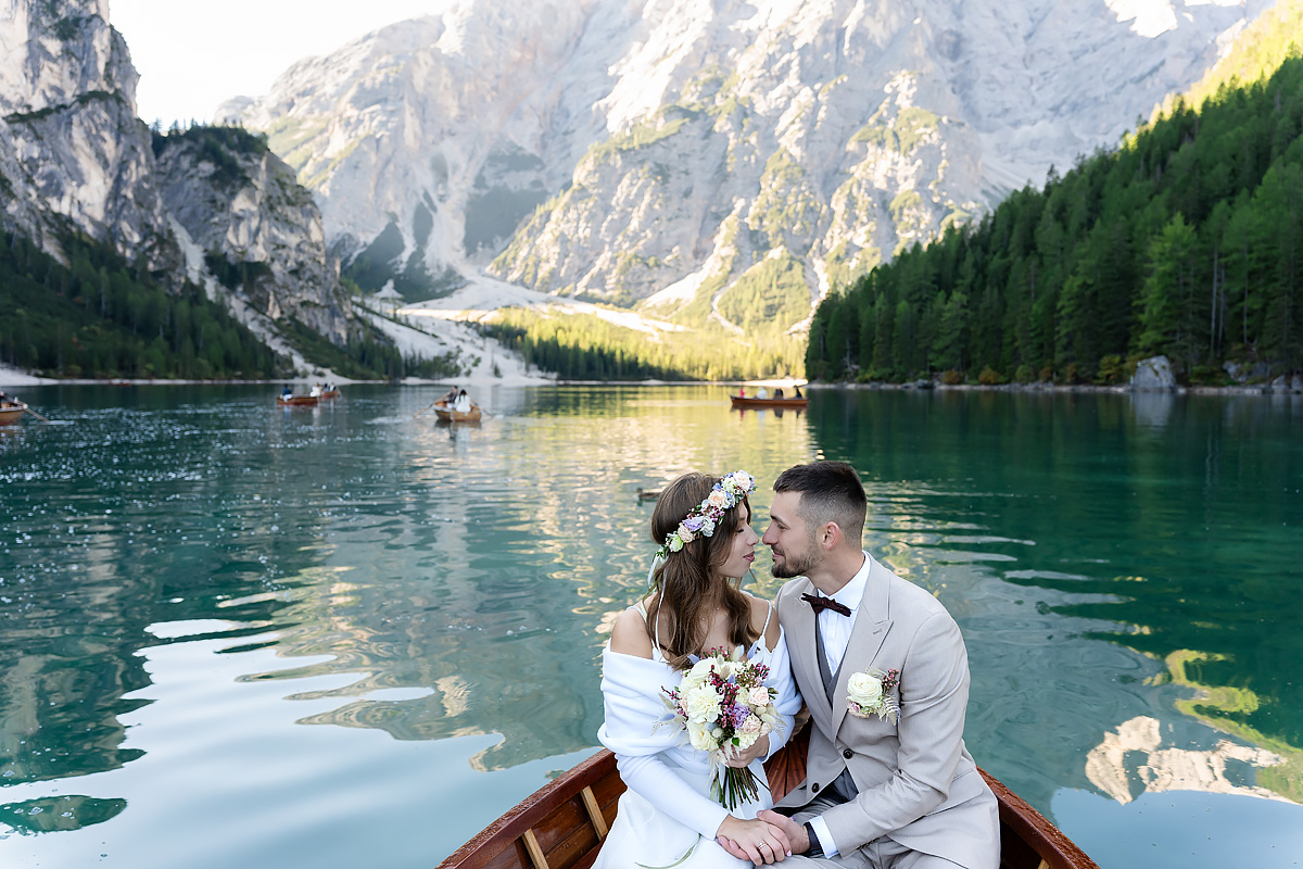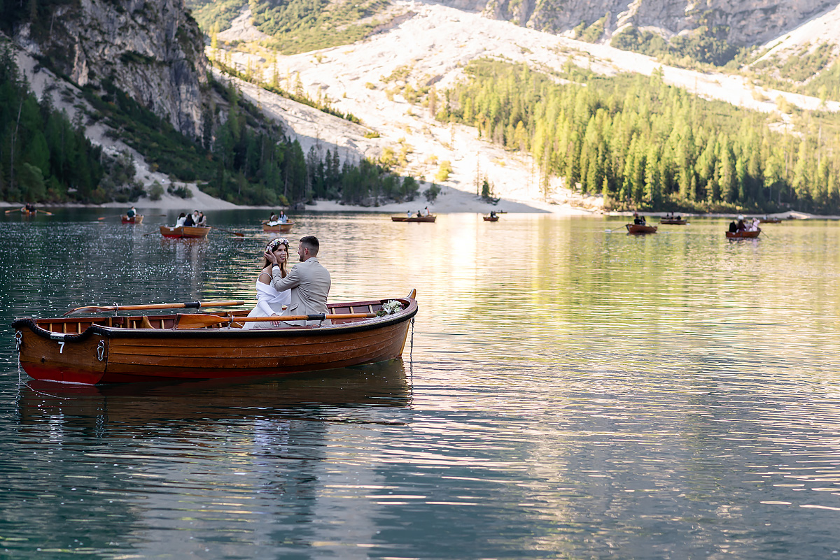 sesja ślubna: wodospad: Cascate di Riva & jezioro: Lago di Braies (Pragser See)