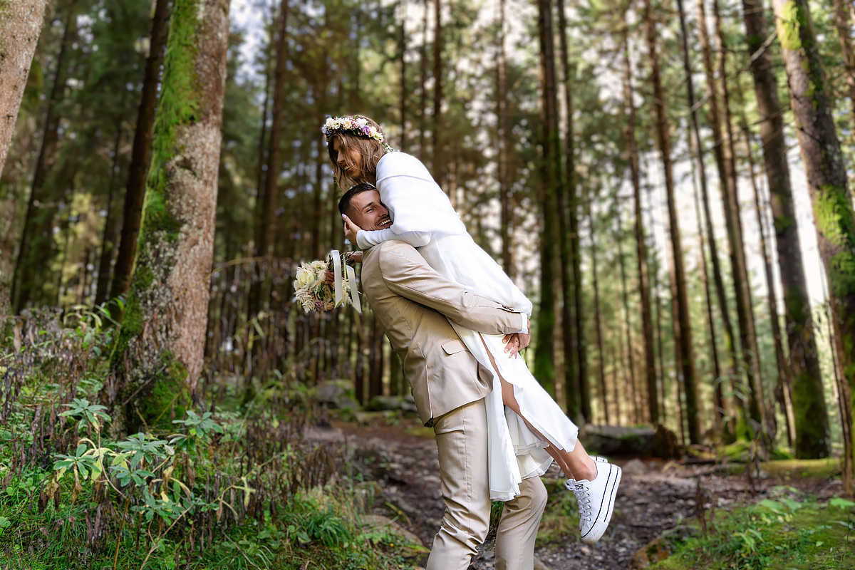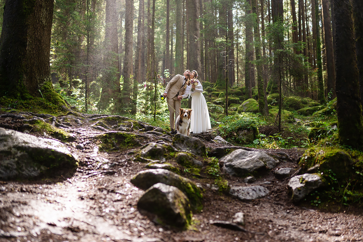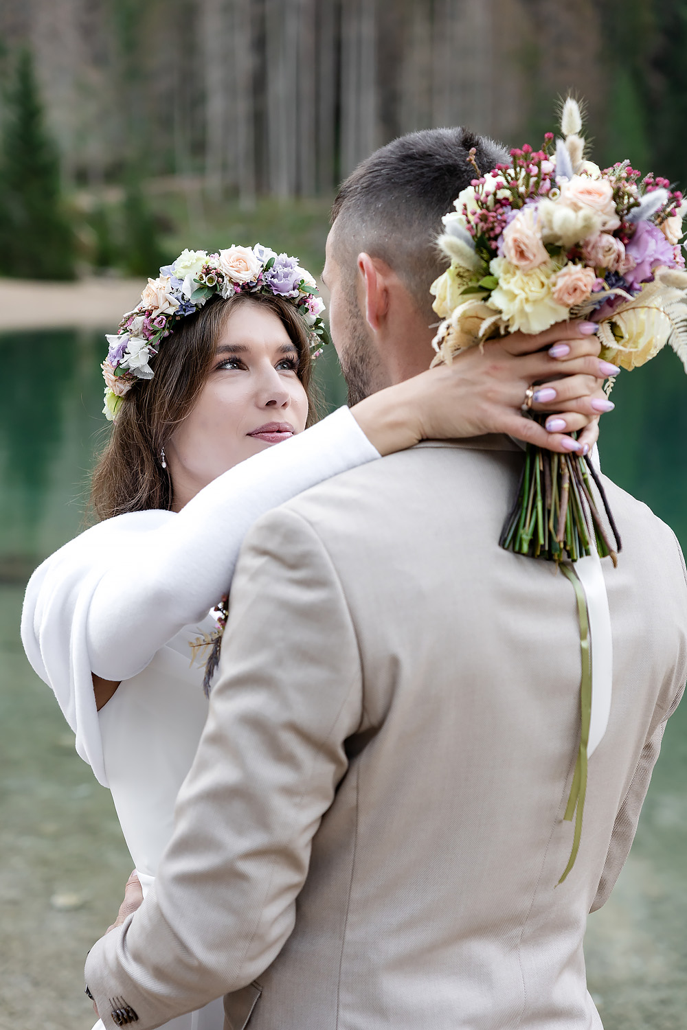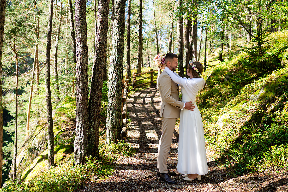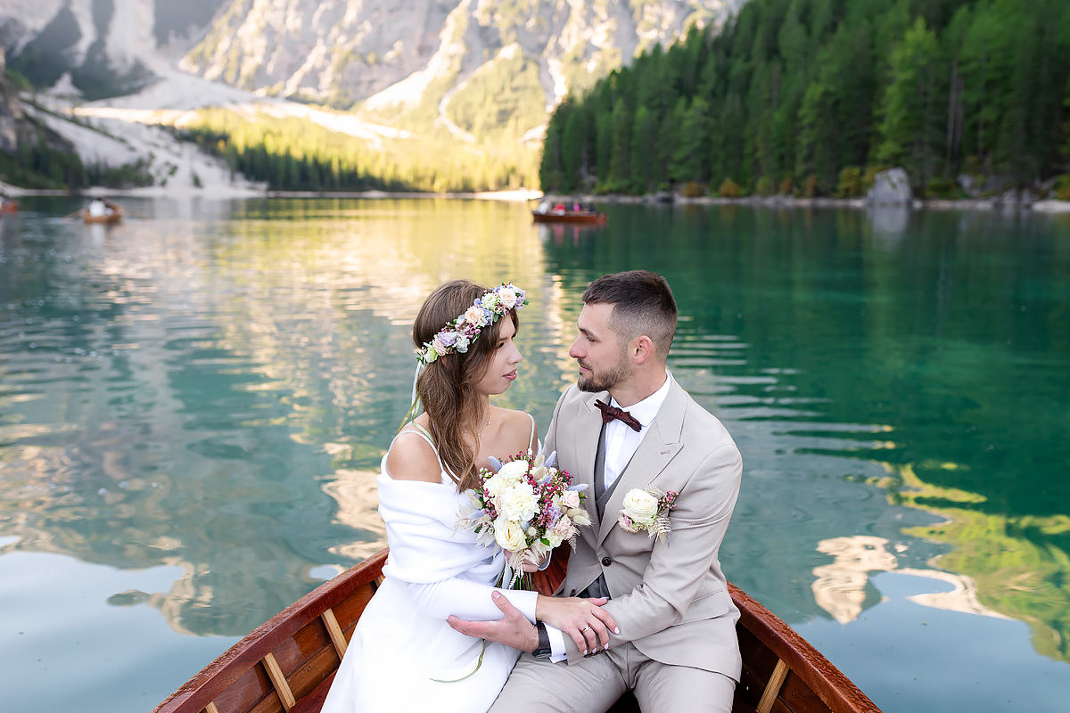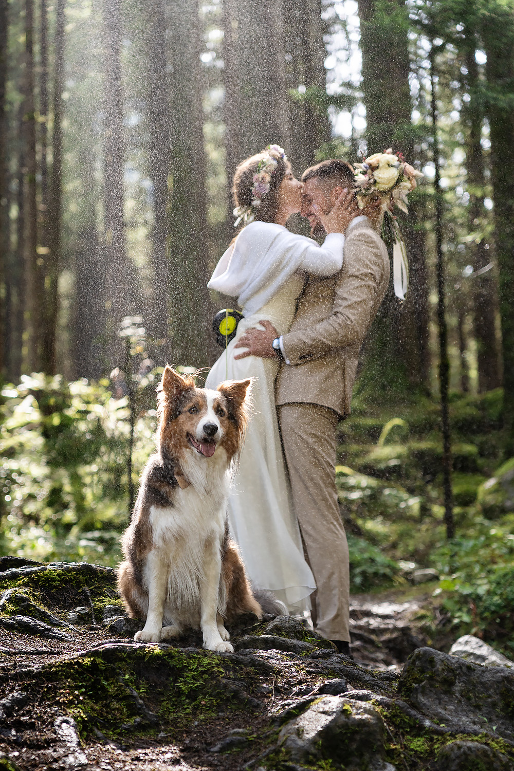 sesja ślubna: wodospad: Cascate di Riva & jezioro: Lago di Braies (Pragser See)