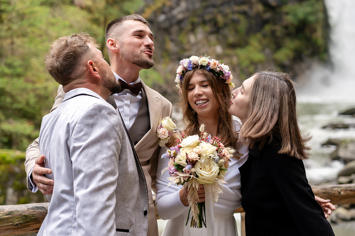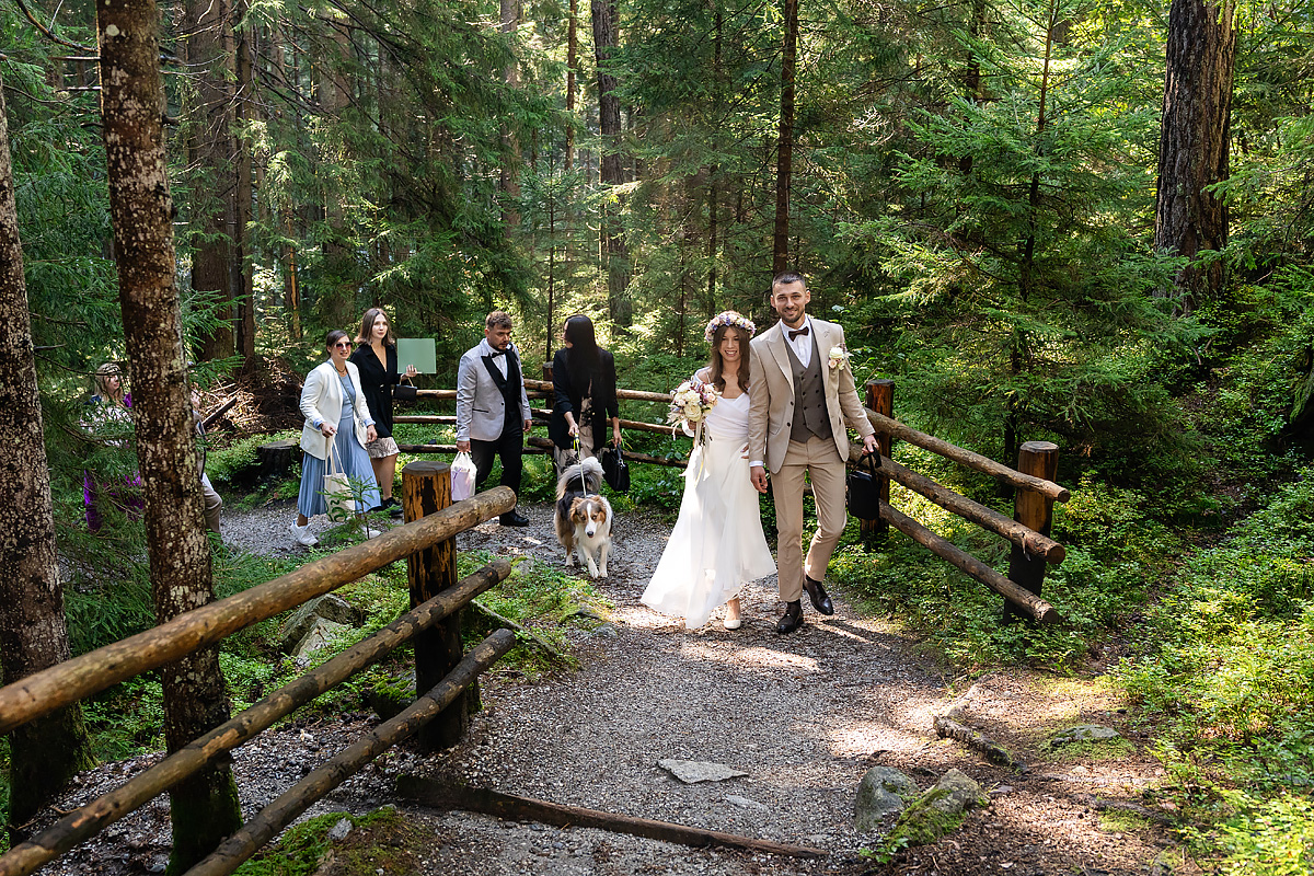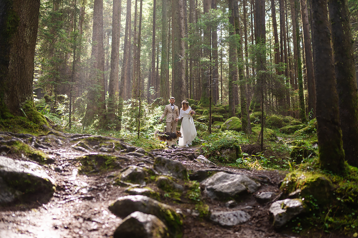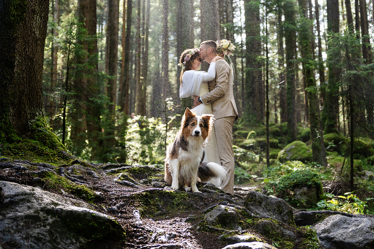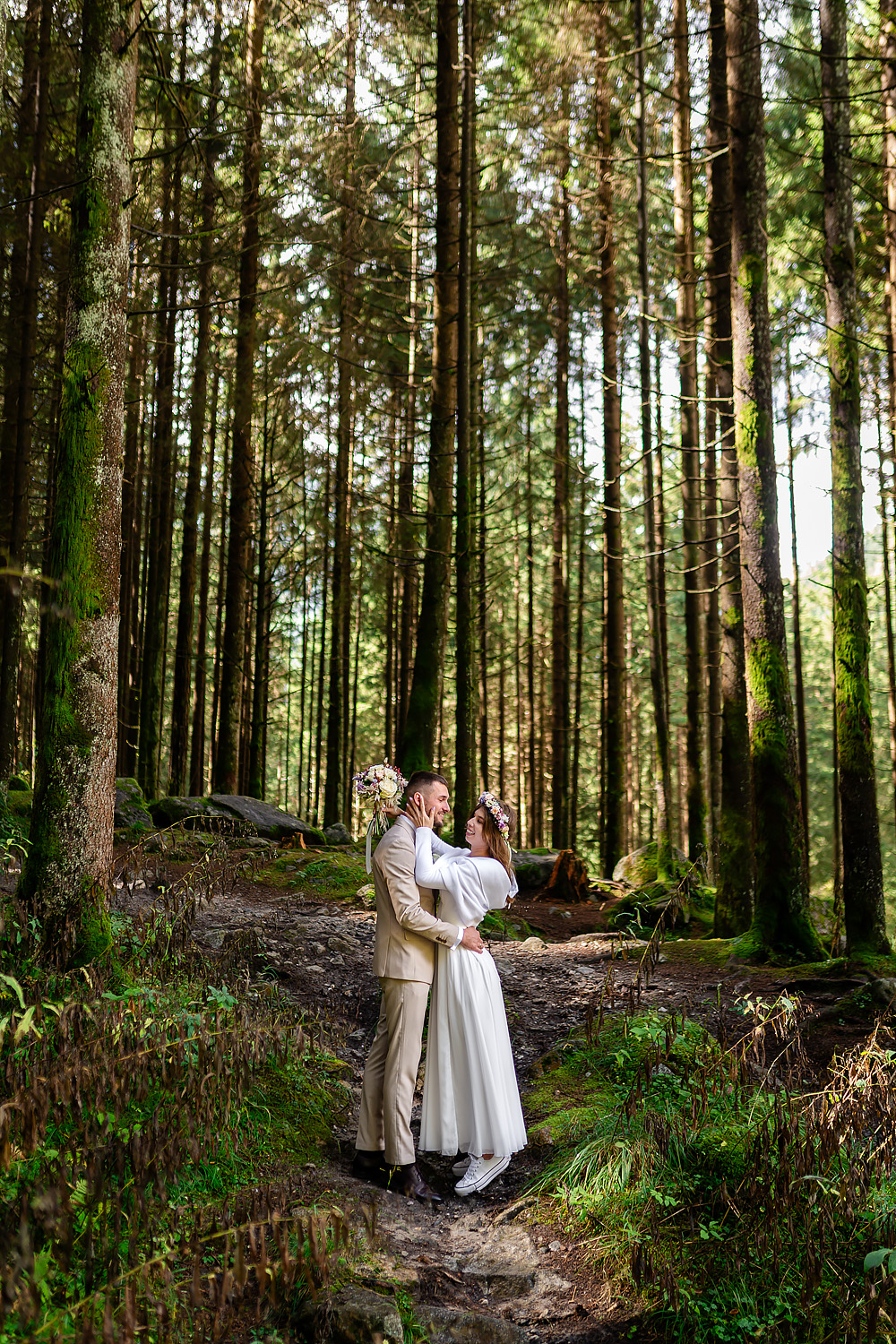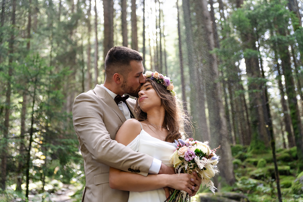 sesja ślubna: wodospad: Cascate di Riva & jezioro: Lago di Braies (Pragser See)